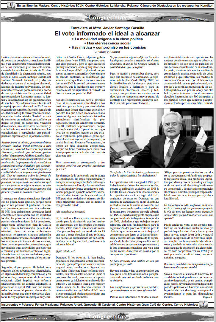 Artículos «El voto informado el ideal a alcanzar» Javier Santiago Castillo para Congresistas. 0 jsc_santiago Deja un comentario Clíck para leer versión PDF Fuente: http://www.congresistas.com.mx/publicaciones/Congresistas%20276.pdf o continúe leyendo…. Compartamos información: Haz clic para compartir en WhatsApp (Se abre en una ventana nueva) WhatsApp Haz clic para compartir en X (Se abre en una ventana nueva) X Haz clic para compartir en Facebook (Se abre en una ventana nueva) Facebook Haz clic para compartir en LinkedIn (Se abre en una ventana nueva) LinkedIn Haz clic para compartir en Tumblr (Se abre en una ventana nueva) Tumblr Haz clic para compartir en Pinterest (Se abre en una ventana nueva) Pinterest Haz clic para enviar un enlace por correo electrónico a un amigo (Se abre en una ventana nueva) Correo electrónico Relacionado