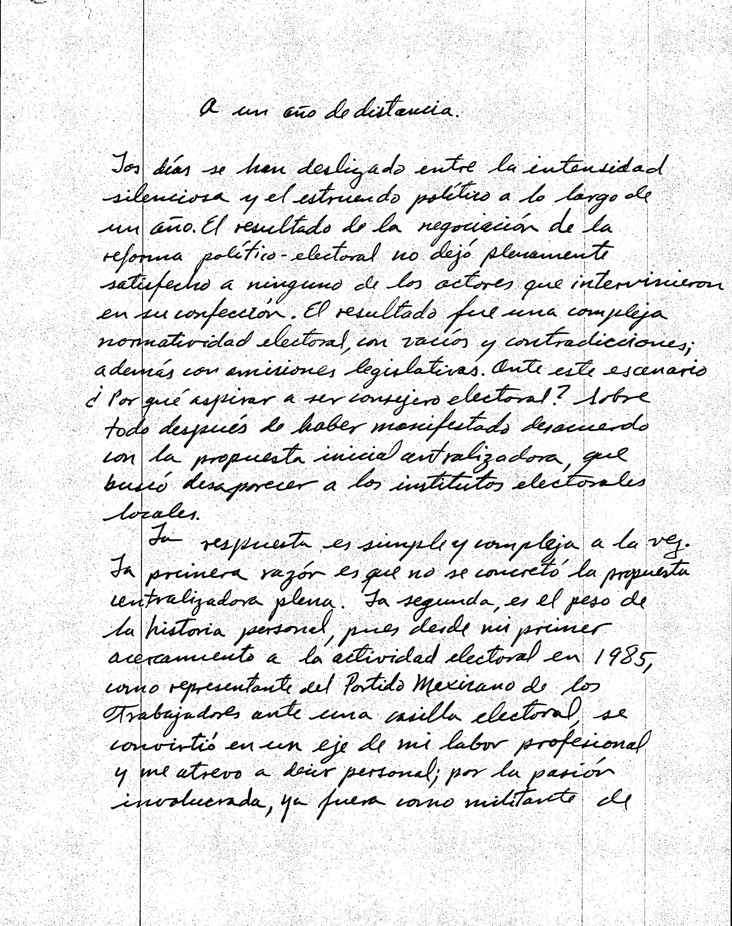 La respuesta es simple y compleja a la vez. La primera razón es que no se concretó la propuesta centralizadora plena. La segunda, es el peso de la historia personal, pues desde mi primer acercamiento a la actividad electoral en 1985, como representante del Partido Mexicano de los Trabajadores ante una casilla electoral, se convirtió en un eje de mi labor profesional y me atrevo a decir personal; por la pasión involucrada, ya fuera como militante de partido, profesor universitario o servidor público. Además la vía electoral era, y es, un instrumento de búsqueda del cambio político pacífico de nuestro país.